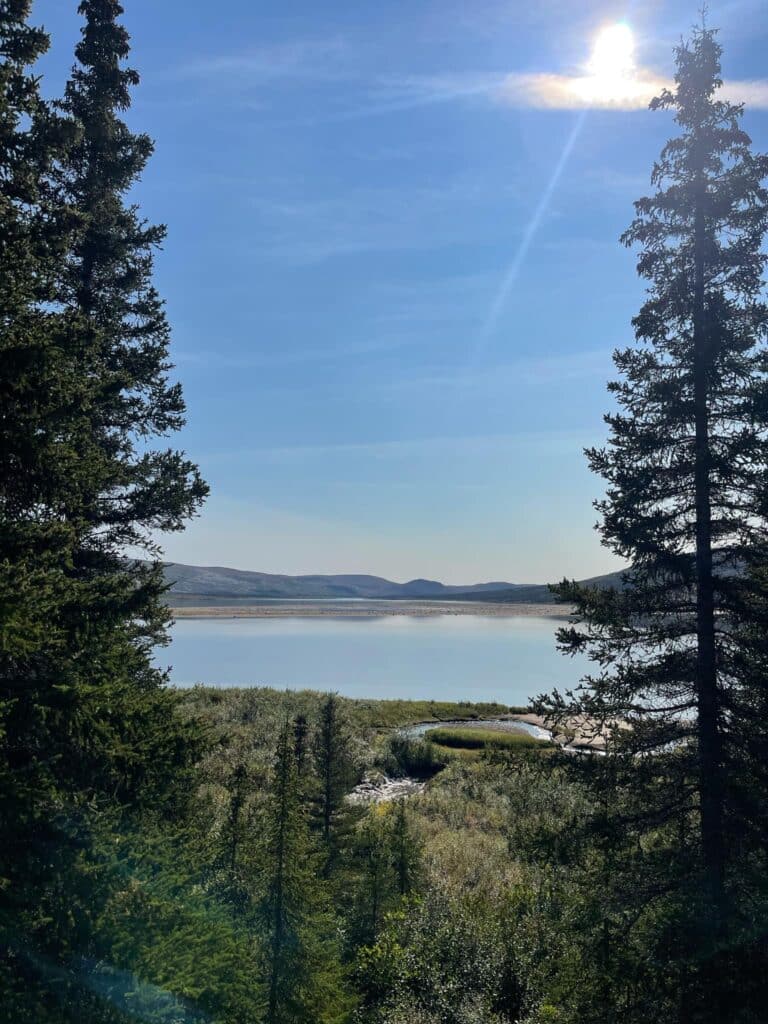 à quelques kilomètres du lodge, donc si votre timing est bon, vous aurez peut-être l'occasion de photographier et d'observer ces créatures d'apparence préhistorique.  Vous rencontrerez des lacs immaculés et des ruisseaux dans lesquels vous pourrez remplir votre bouteille d'eau pour étancher votre soif grâce à sa fraîcheur glaciale.
