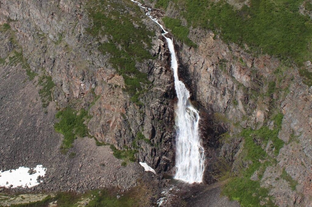 Thunder Falls est un authentique trésor caché au fond du Canyon Fraser au Labrador. D’une hauteur dépassant les 100 mètres et faisant plus de 20 mètres de largeur à sa base, cette cascade forme un imposant voile blanc au bruit assourdissant.