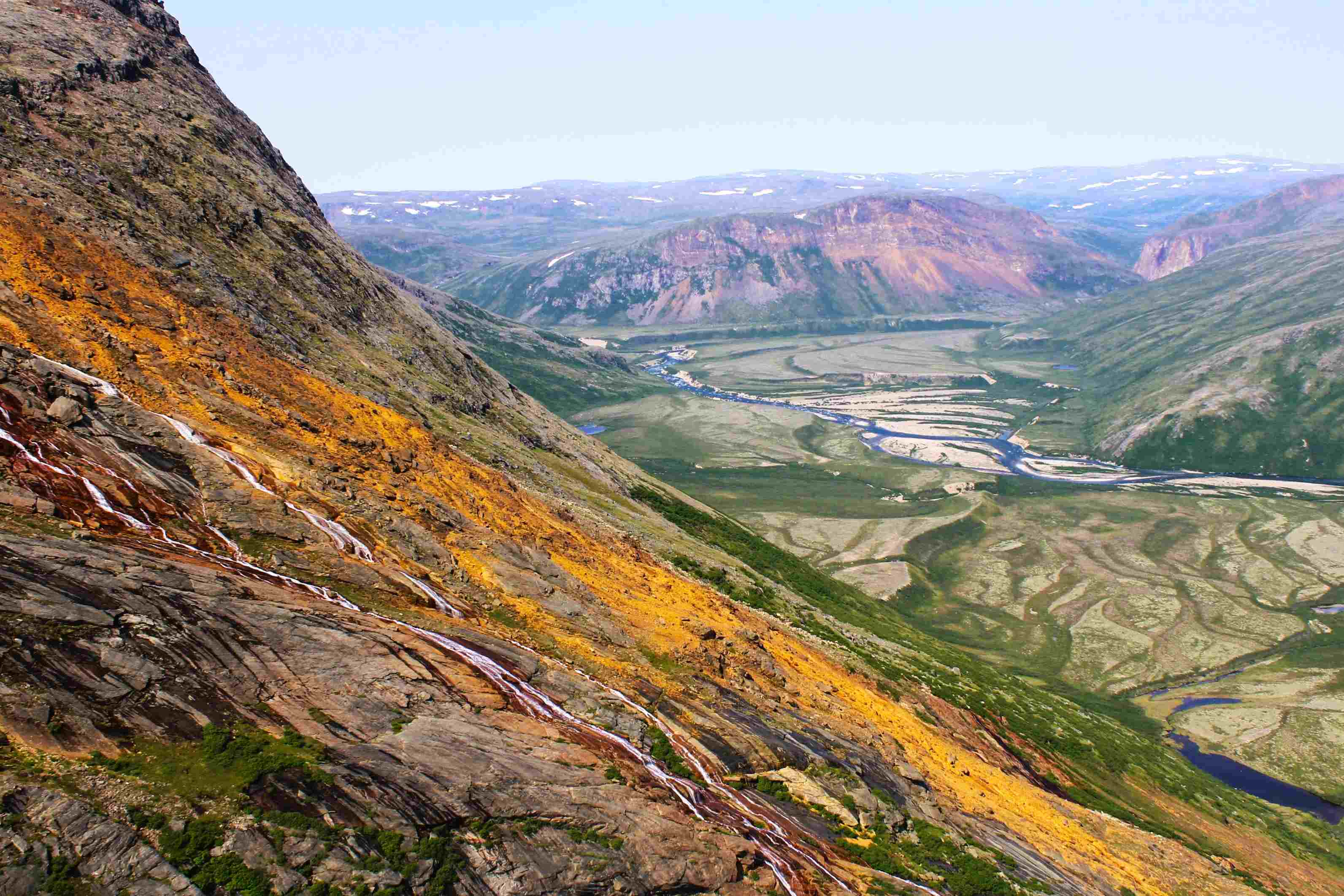 Tarn Lake signifiant “petit lac” ajoute un élément pittoresque aux paysages des fjords. Tout comme Tran Lake qui est perché à 553 mètres au-dessus d’Hébron Fjord Lake dans un cirque creusé par les glaciers.