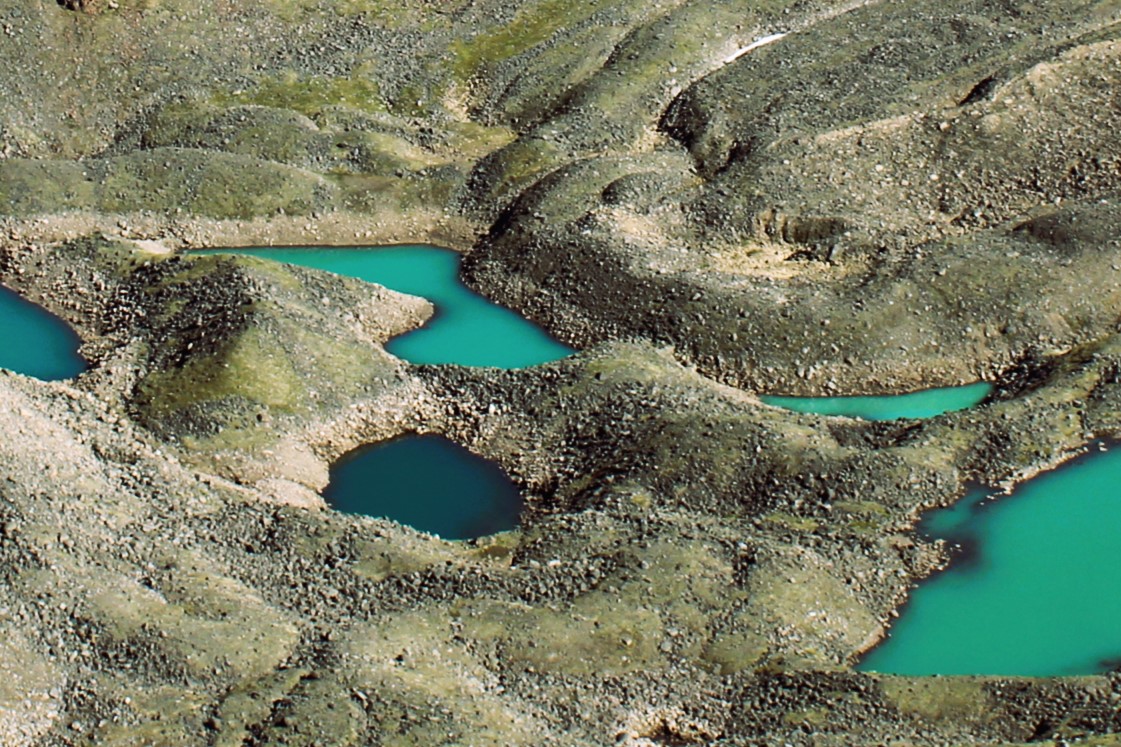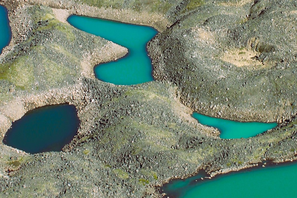 The Kettles are glacial lakes with striking contrasts, they are among the most colorful lakes in the Torngats Mountains. Located in a strange area of morainic hills with ice cores, the Kettles are affected by thermo-erosion.