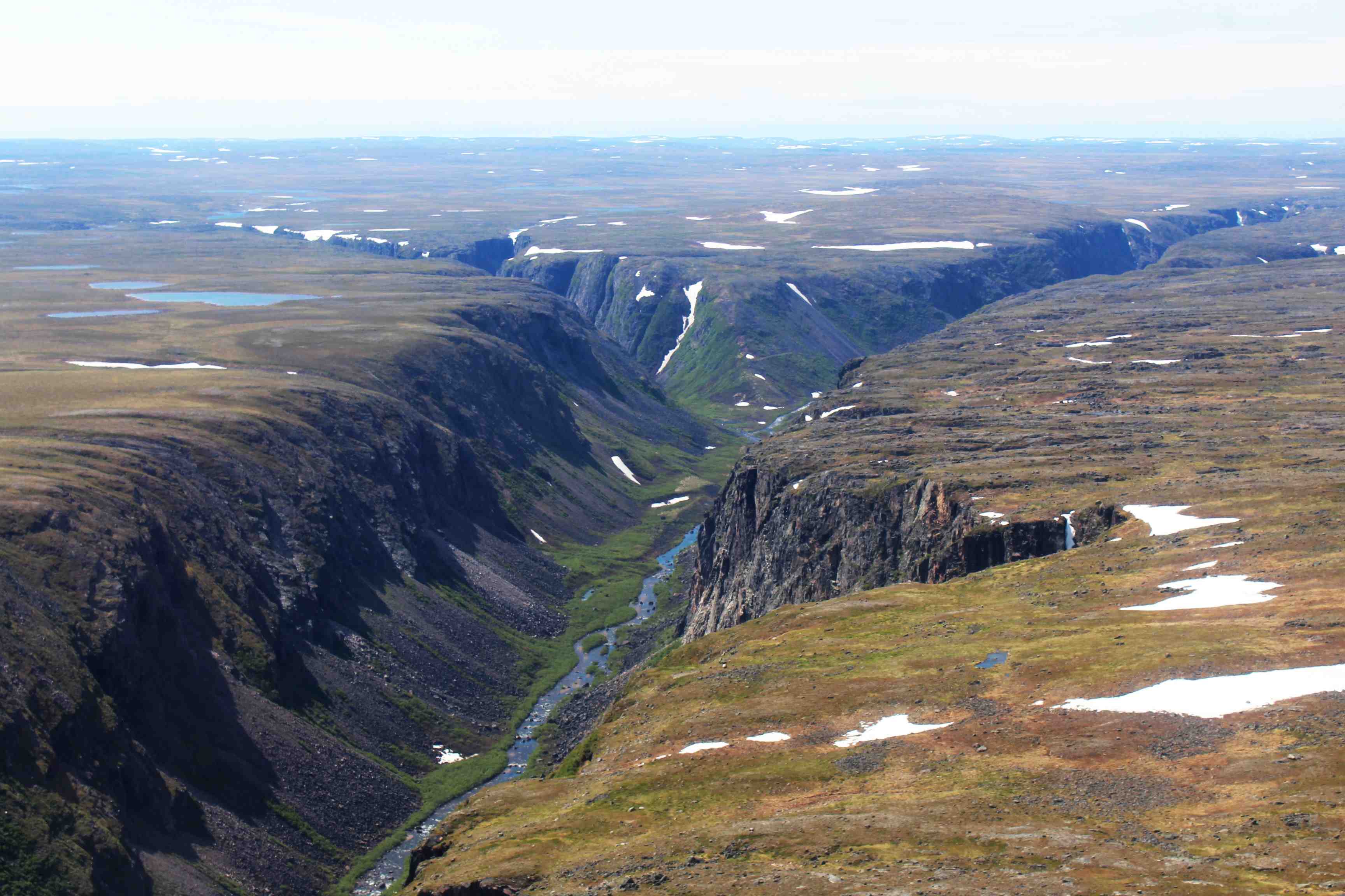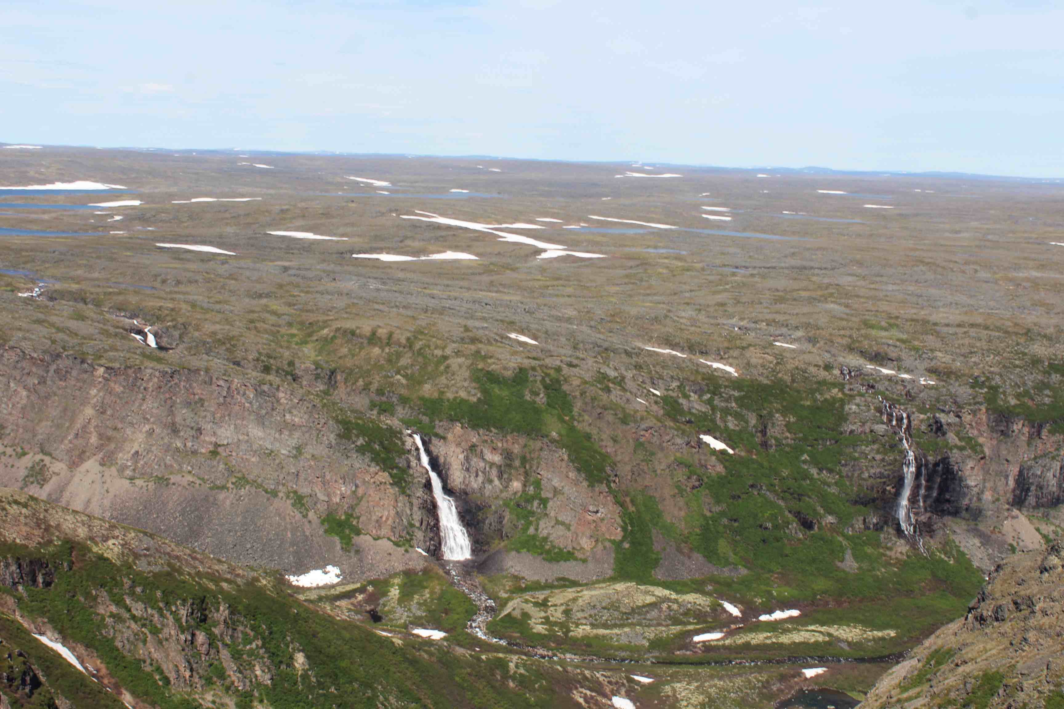 Thunder Falls is an authentic hidden treasure at the bottom of Fraser Canyon in Labrador. With a height exceeding 100 meters and more than 20 meters wide at its base, this waterfall forms an imposing white veil of mist and is intimidating by its deafening noise.